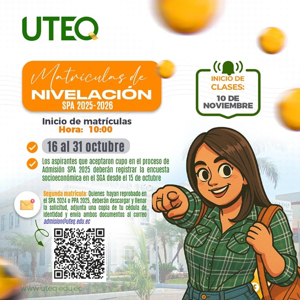 Para más información acerca del proceso de postulación en nuestra Institución escribenos a soporteadmision@uteq.edu.ec.
